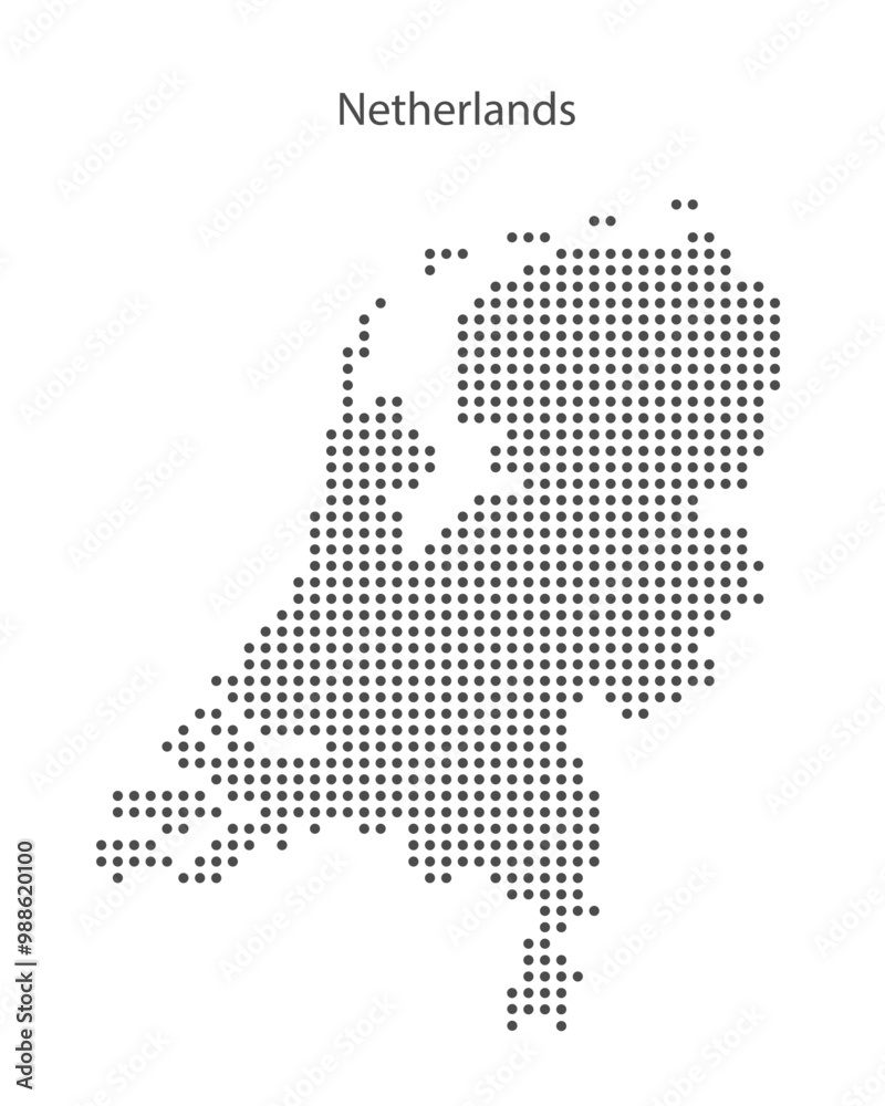 Fényképezés Abstract dotted black and white map of Netherlands