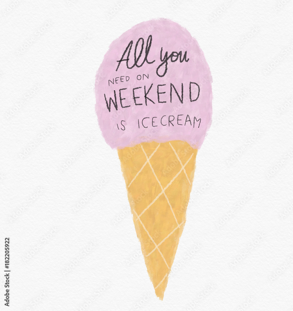 Fototapeta All you need on weekend is ice cream watercolor painting illustration