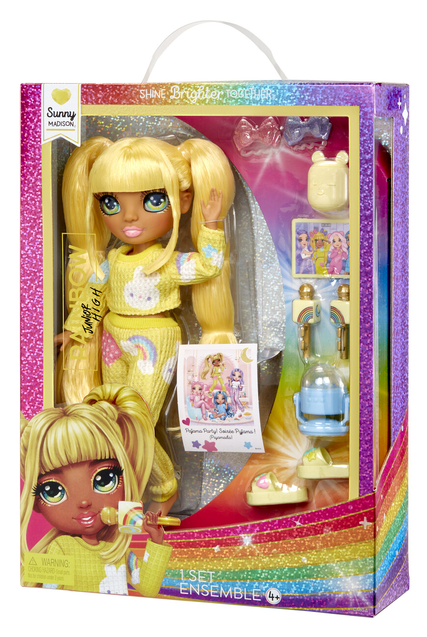 A készlet tartalmaz egy divatbaba, egy teljes pizsamás ruhát, egy pár baba papucsot, 2 mikrofont, hordozható hangszórót, diszkófényt, táblagépet, 2 szép csipeszt és babakefét.