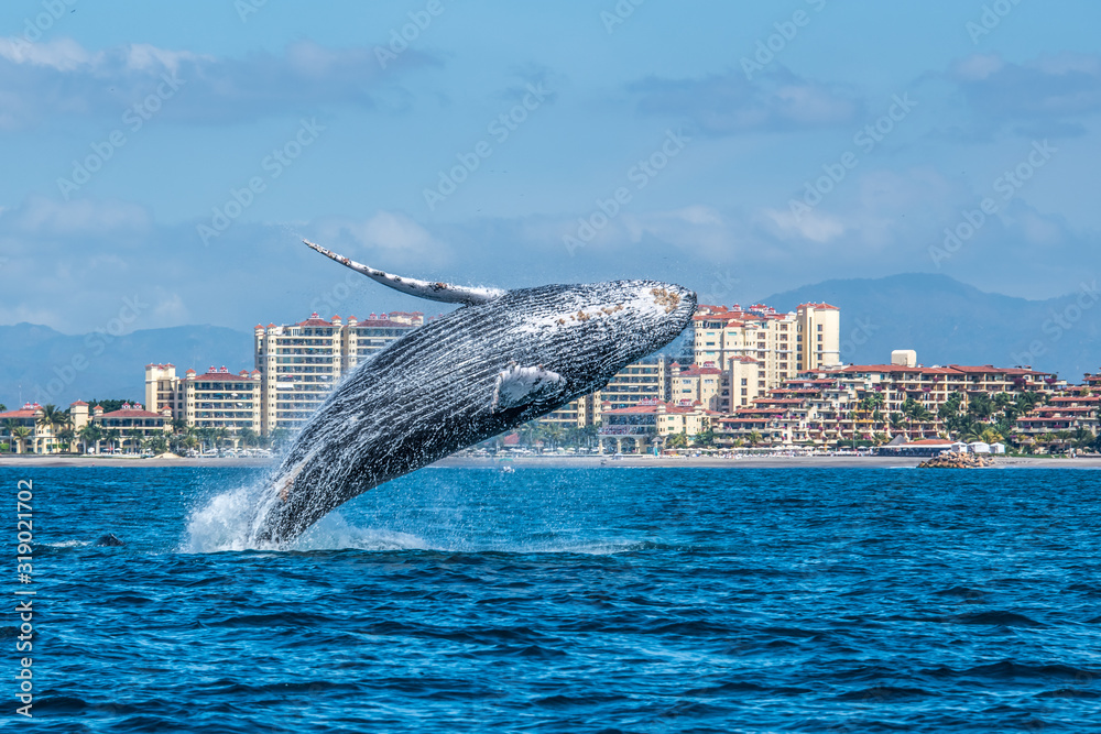 Vászonkép Breaching Humpback in front of Marina Vallarta