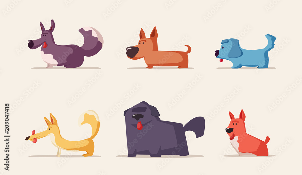 Vászonkép Cute funny dogs. Cartoon vector illustration. Pet characters