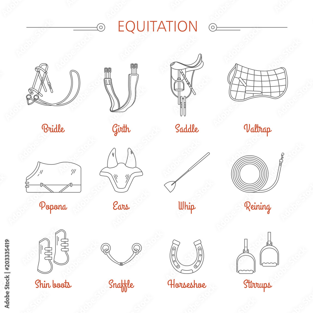Vászonkép Equitation equestrian sport equipment vector icons