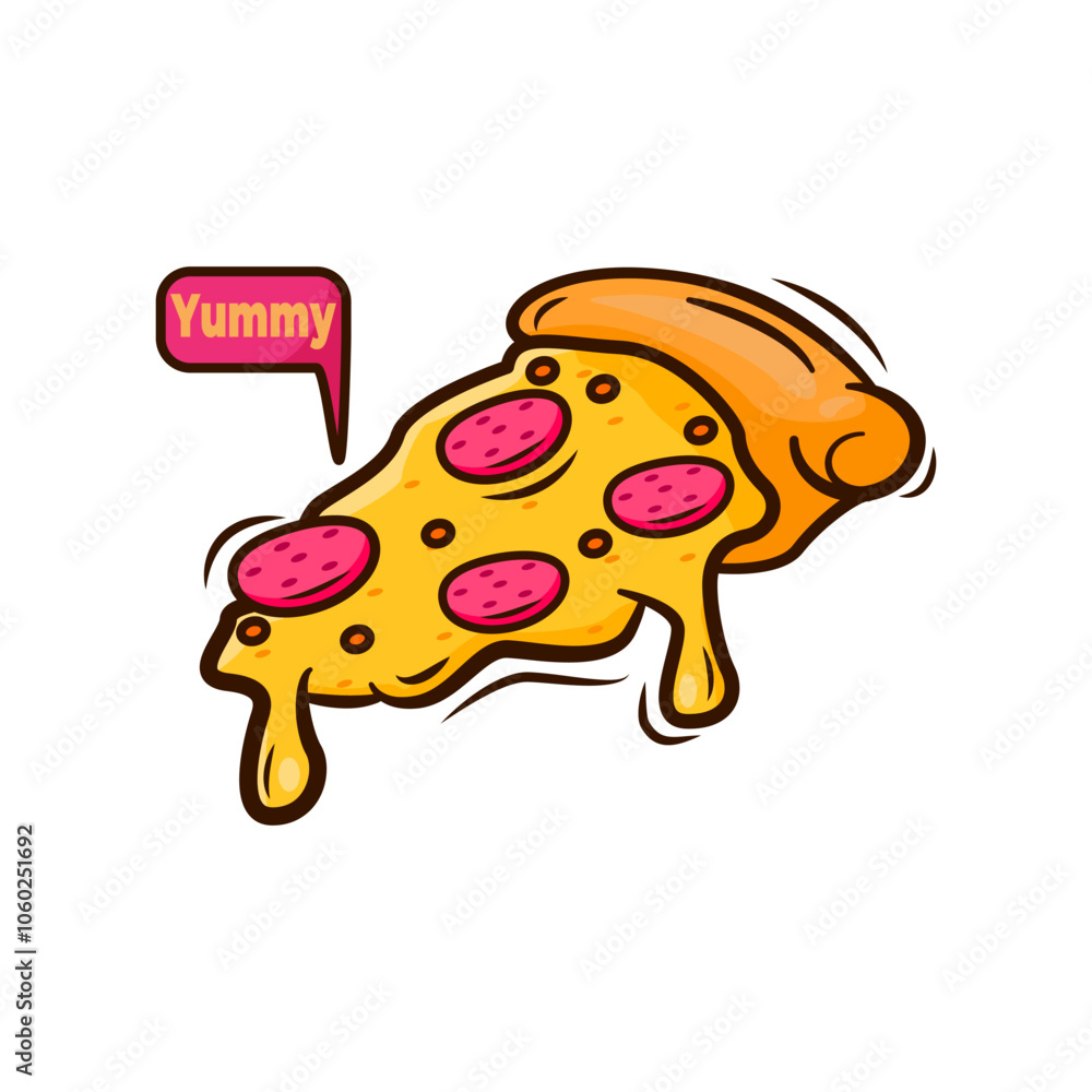 Fototapeta Cartoon cheesy pepperoni pizza slice. Yummy food