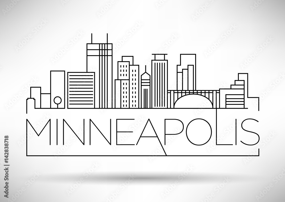 Fototapeta Minimal Minneapolis Linear City Skyline with Typographic Design