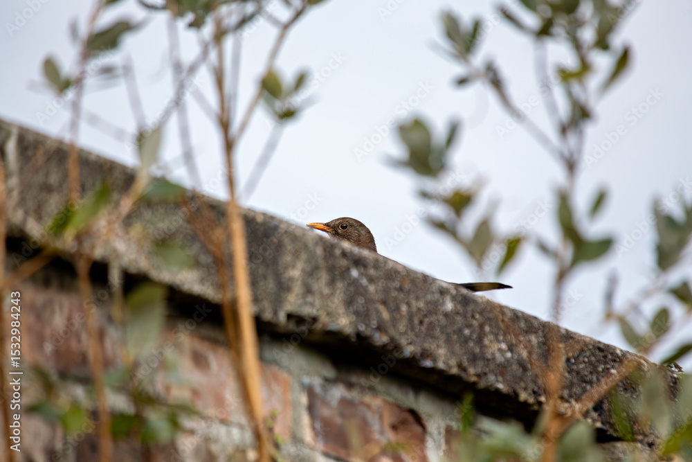 Fototapeta Female Blackbird (Turdus merula) in Dublin, commonly found across Europe in gard