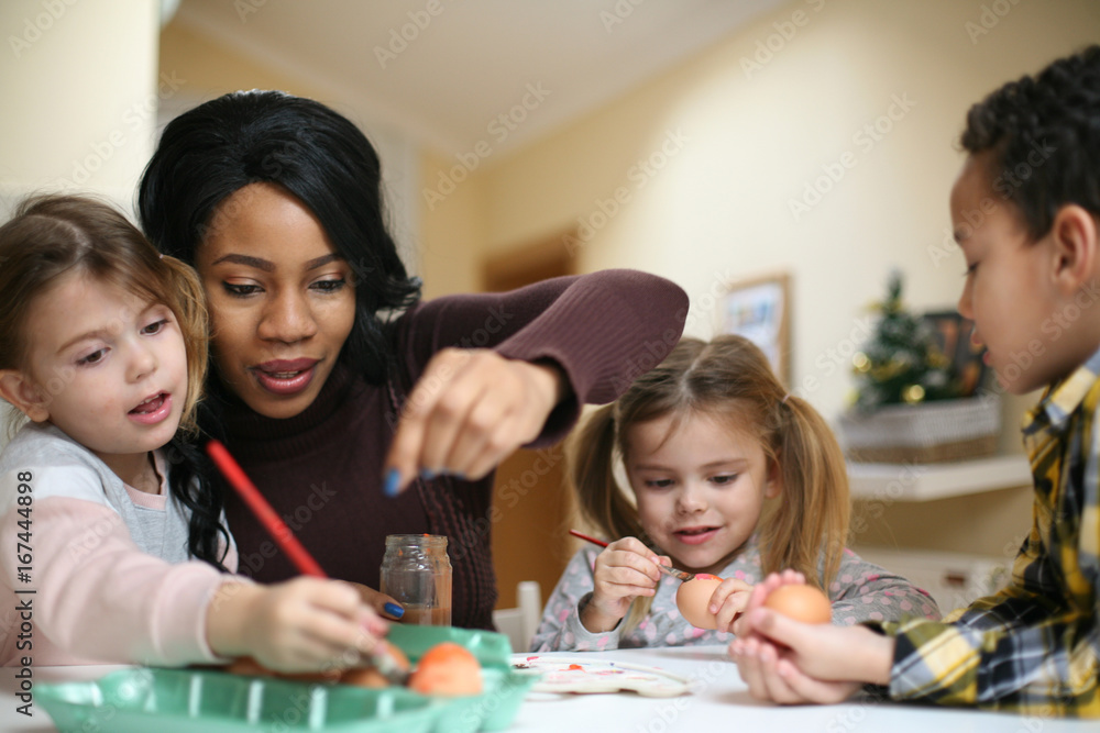 Fototapeta Woman with three child
