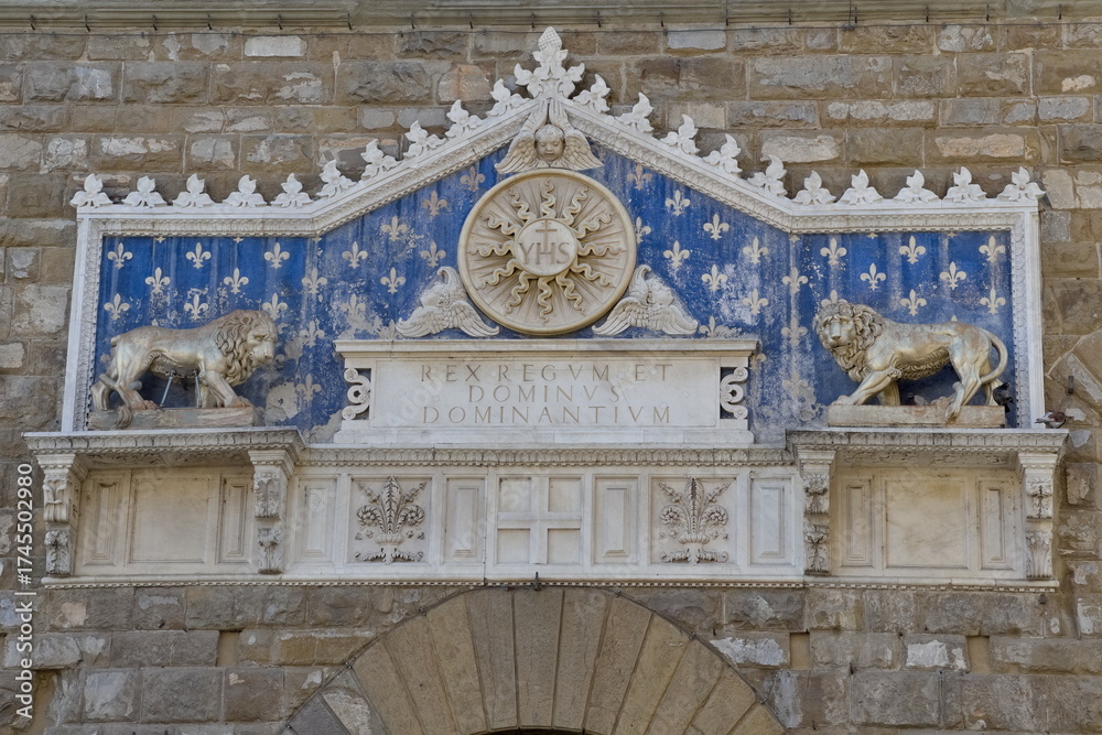 Fototapeta Frontispiece on the facade of Palazzo Vecchio, Florence, Italy