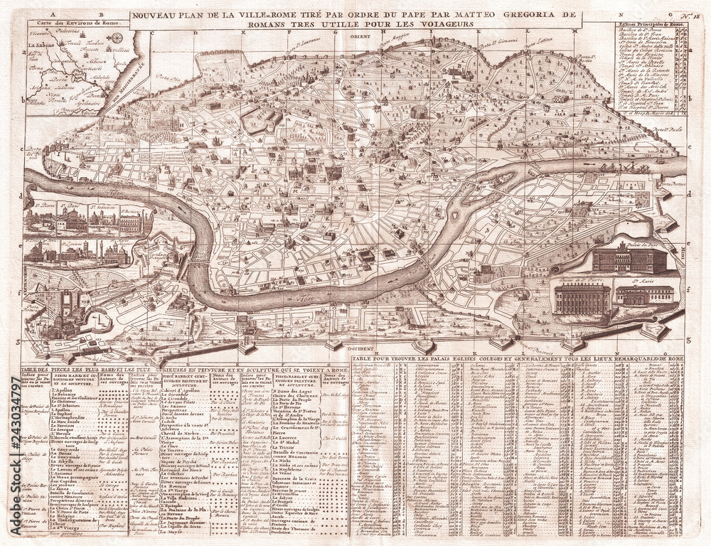Fototapeta Old Map of Rome, Italy, 1721, Chatelain Plan