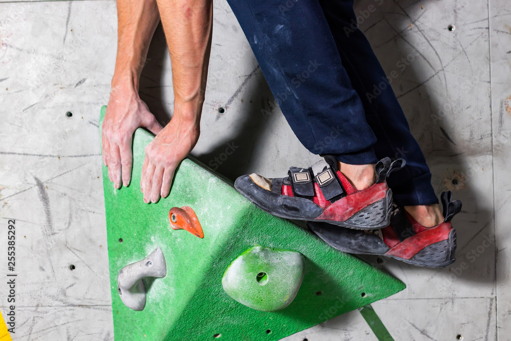 Fototapeta rocky shoe on a tiny, scanty snare stands with the tip of the sock in close-up o