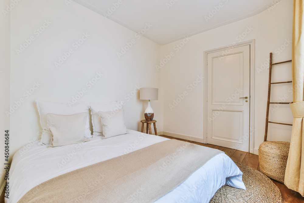 Fototapeta Beautiful interior design of modern and cozy bedroom