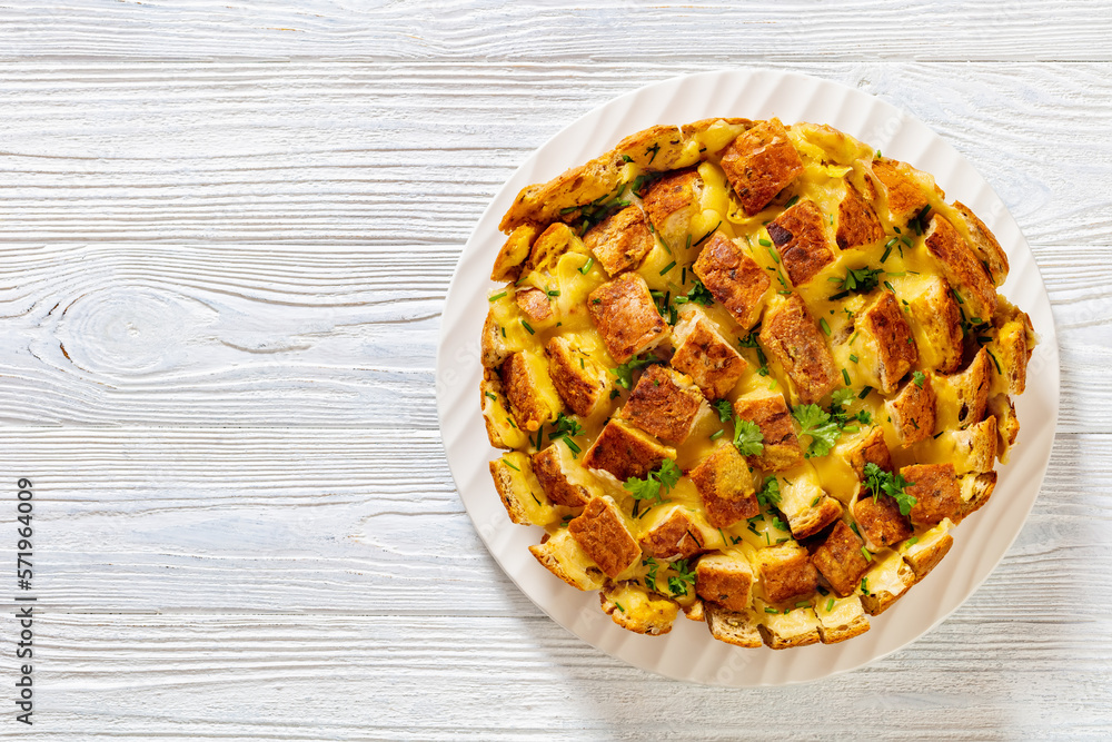 Fototapeta cheesy garlic bread, pull apart bread, top view
