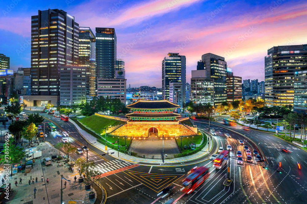 Fototapeta Busy traffic at Namdaemun gate in Seoul, South Korea.