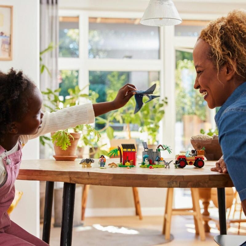 A 4 éves és idősebb rajongók nagyon jól szórakozhatnak a Dinoszauruszbaba-mentő központban (76963), és megtanulhatják, hogyan kell gondoskodni a kis dinoszauruszokról. Élvezhetik a terepjárót és a kutatási területet is, ahol egy barlang található kezdő blokkokkal vagy az etetőállomással. 2 minifigura, egy ankyloszaurusz bébi, egy triceratops és egy velociraptor, valamint egy velociraptor bébi és egy felnőtt pteranodon figurái biztosítják, hogy a gyerekek azonnal belevághassanak a játékba. A LEGO dinoszauruszok építési útmutatója tökéletes megoldás az olvasni még nem tudó gyerekek számára. Az építési útmutatóval ellátott LEGO® Builder alkalmazás még szórakoztatóbbá teszi a játékot az intuitív zoom- és forgatási eszközökkel, amelyekkel a kis építők építés közben is megtekinthetik a modellt. A LEGO Jurassic World sorozat építőelemei nagyszerű ajándékot jelentenek a 4 éves és annál idősebb kis dinoszauruszrajongóknak. Megismertetik a gyerekeket kedvenc film- és tévésorozatszereplőikkel. A modellek kezdő téglákat használnak, így egy idősebb testvér vagy felnőtt családtag segítségével még a LEGO világában teljesen kezdő építők is nekiláthatnak a járművek, épületek és egyéb alkotások építésének.