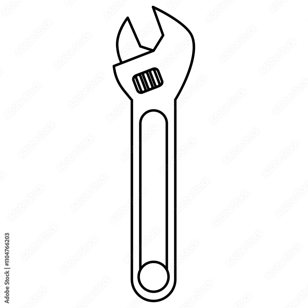 Fényképezés Adjustable wrench line art vector illustration, monkey wrench line icon, wrench