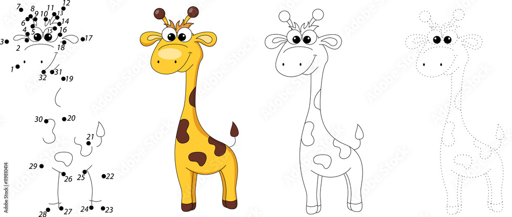 Fényképezés Cartoon giraffe. Dot to dot game for kids
