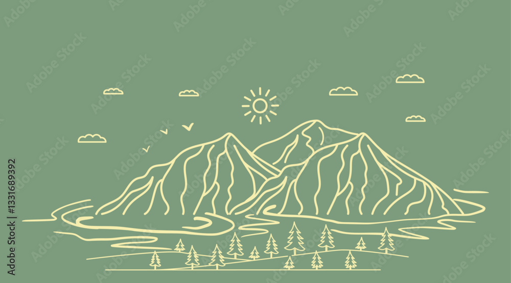 Fényképezés Abstract landscape mountain on Green background