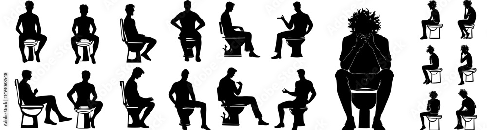 Fényképezés A young man is depicted sitting in a toilet bowl, shown in silhouette form again