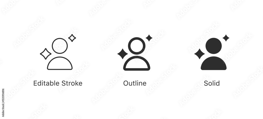 Fényképezés User icon sparkle star symbol | magic, filters, effects sign icons in editable stroke, outline, and solid styles