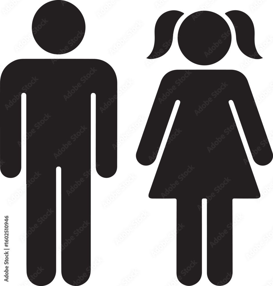 Fényképezés Kids or children black vector icon. Boy and girl symbols.