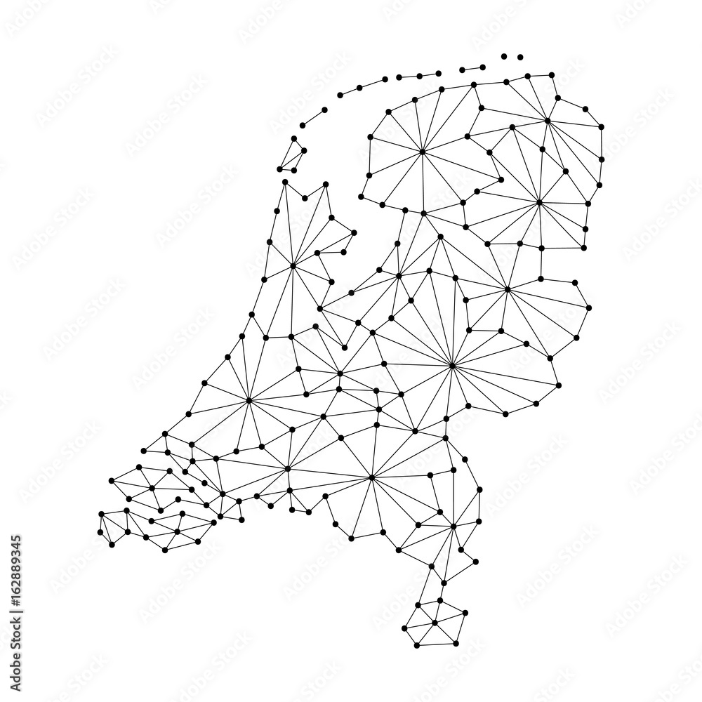 Fényképezés Netherlands map of polygonal mosaic lines network, rays and dots of vector illustration
