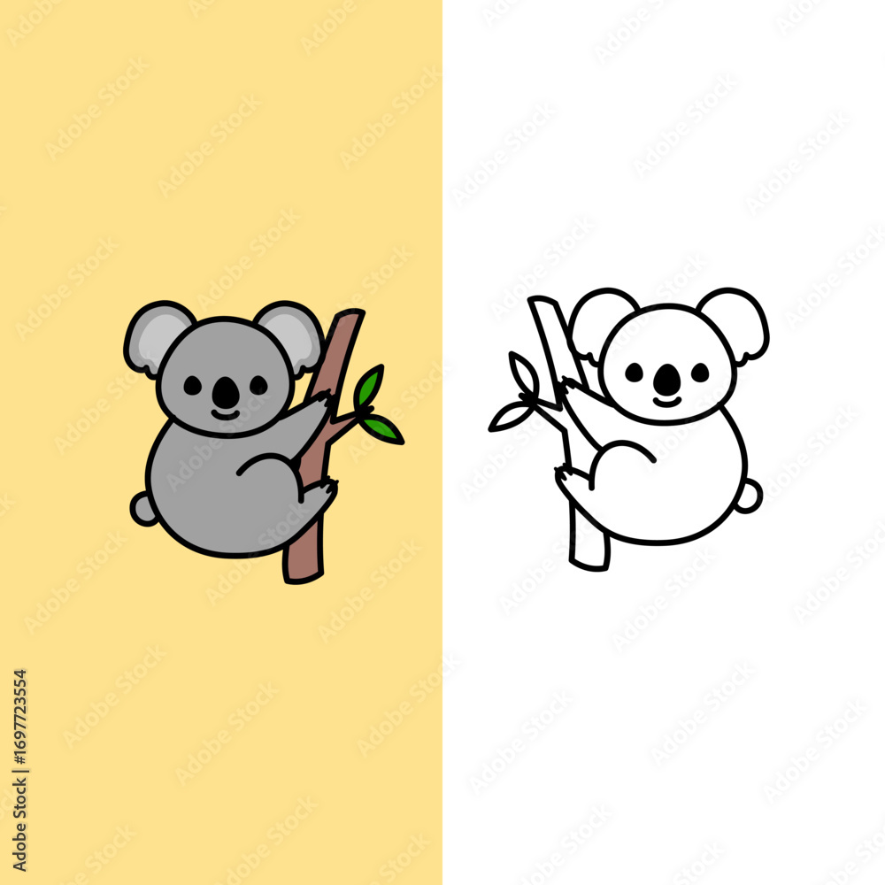 Fényképezés Vector of a pair of cute koalas in color and outline in EPS format