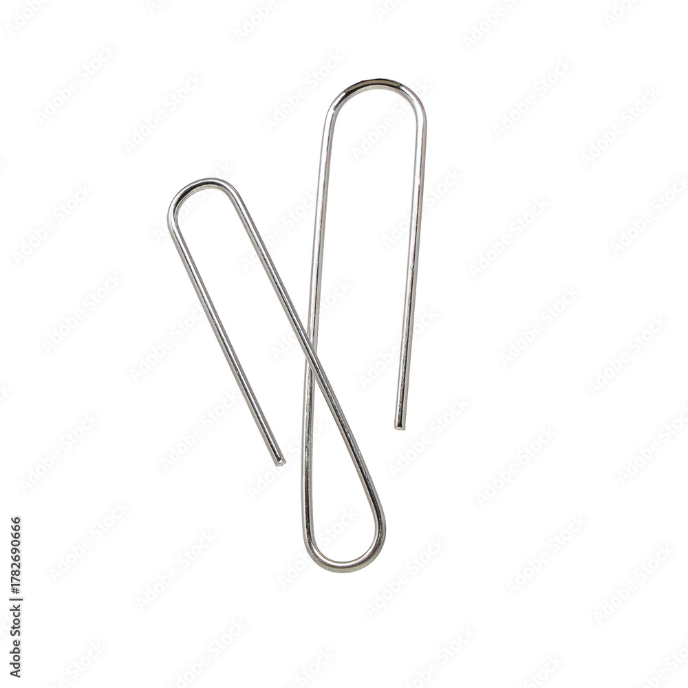 Fényképezés Silver metal paper clip isolated on white, an essential office stationery object