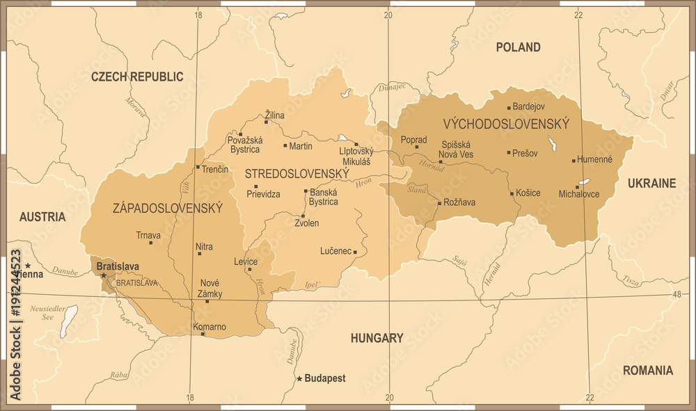 Fényképezés Slovakia Map - Vintage Detailed Vector Illustration