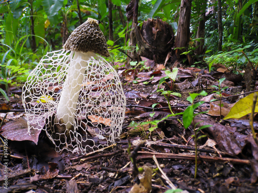 Fényképezés Phallus indusiatus mushroom, commonly called bamboo fungus, bamboo pith, long ne