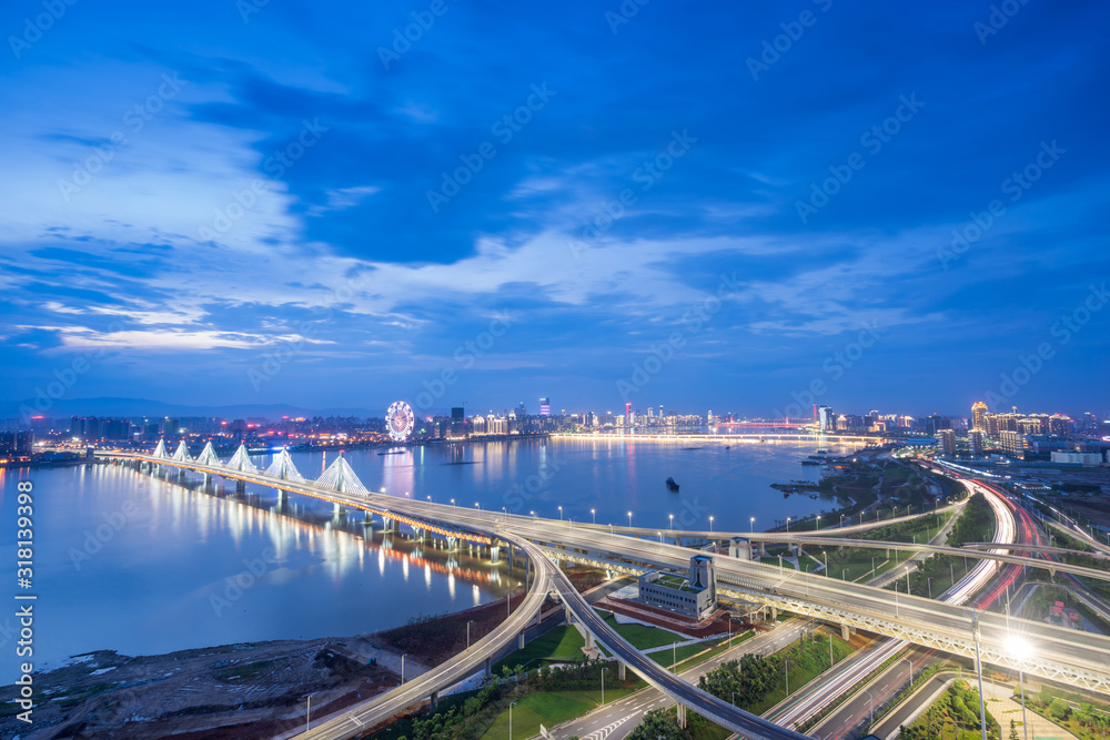Fényképezés shanghai interchange overpass and elevated road in nightfall