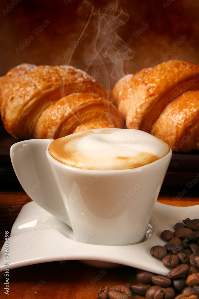 Fényképezés Buon risveglio con cappuccino e brioches calde