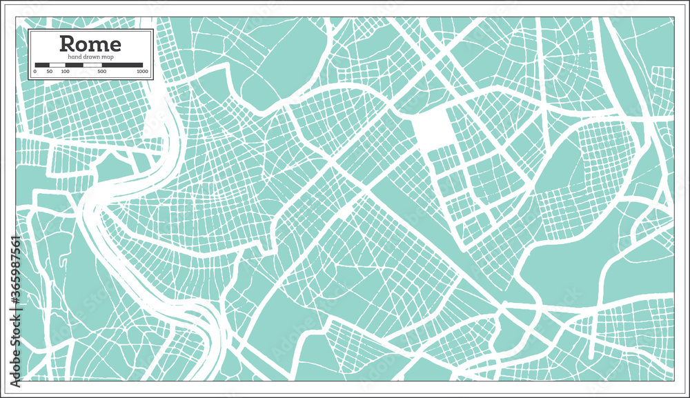 Fényképezés Rome Italy City Map in Retro Style. Outline Map.