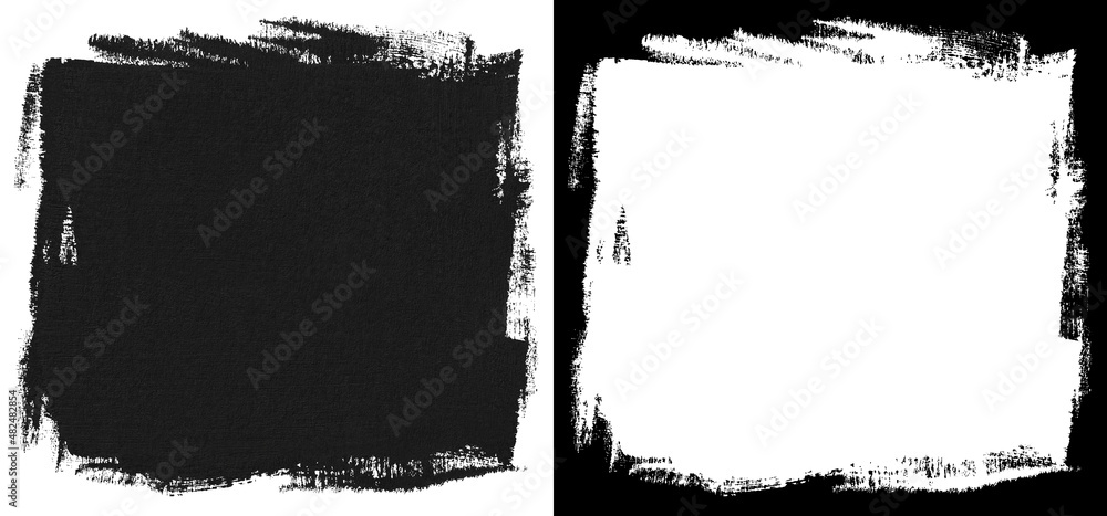 Fényképezés Square block of black paint texture isolated on white background with clipping mask (alpha channel) for quick isolation
