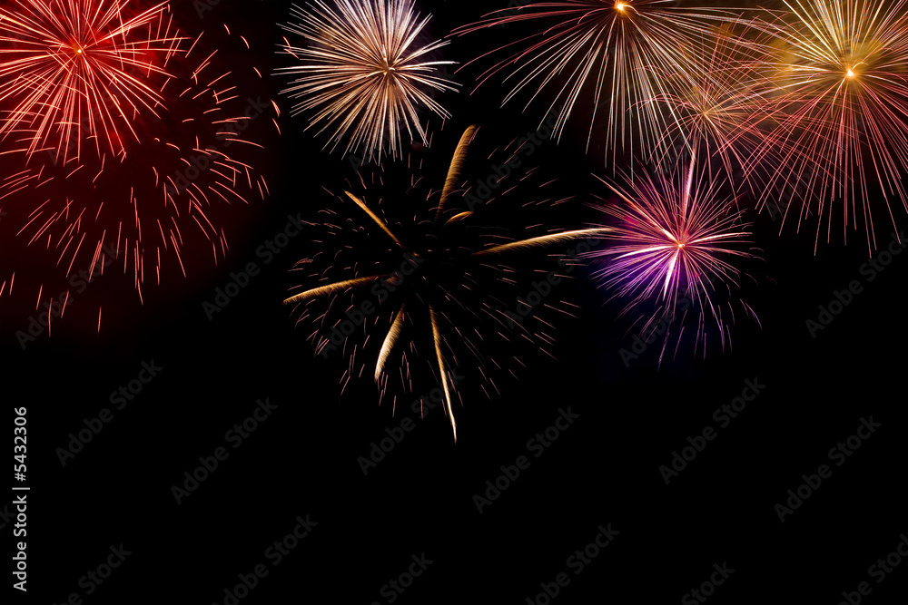 Fényképezés Multiple brightly coloured fireworks exploding