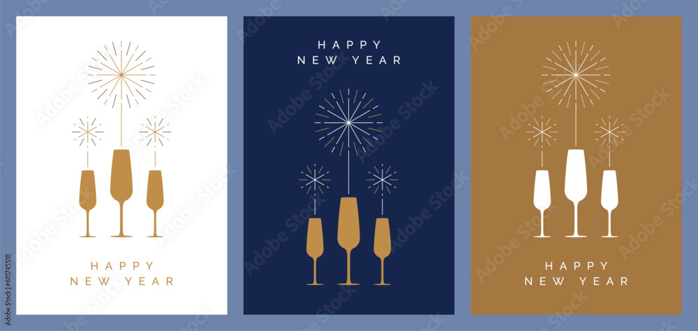 Fényképezés Happy New Year Design Template with Illustration of Champagne Glasses and Fireworks