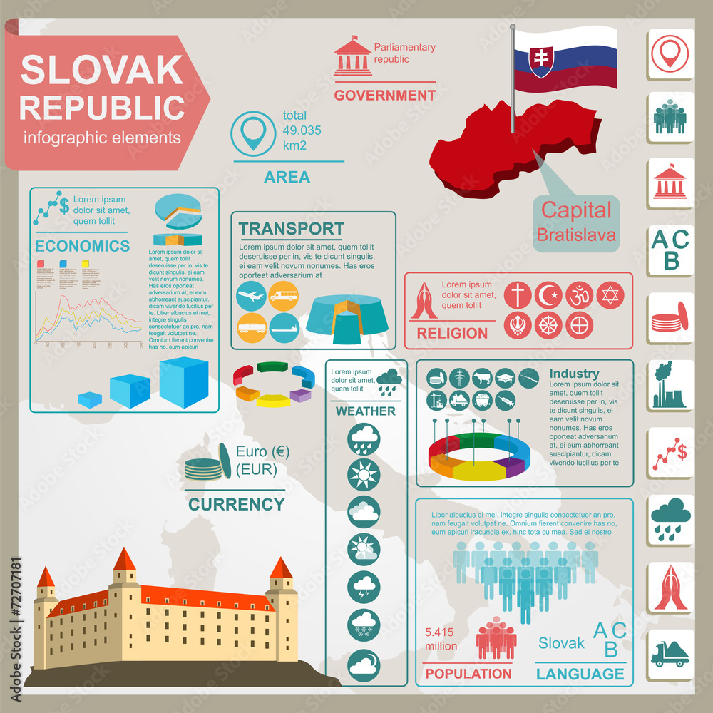 Fényképezés Slovakia infographics, statistical data, sights