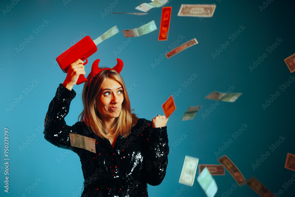 Fényképezés Evil Rich Woman Shooting Money in the Air