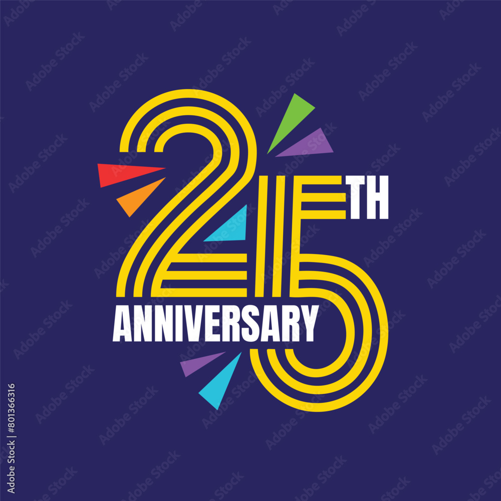 Fényképezés 25th anniversary logo with golden color text and celebration elements on blue background