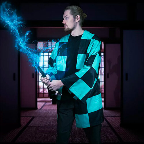 Ez a hiteles másolat Tanjiro Kamada haorijáról a Demon Slayer anime sorozatból, egy hivatalosan engedélyezett termék, az ikonikus zöld-fekete kockás mintával. Az univerzális méret kényelmes illeszkedést biztosít.