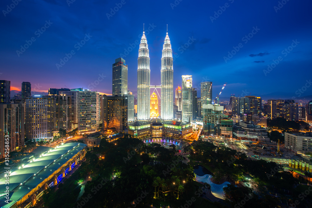 Fényképezés Kuala Lumpur city skyscraper and green space park with nice sky sunset at downtown business district in Kuala Lumpur