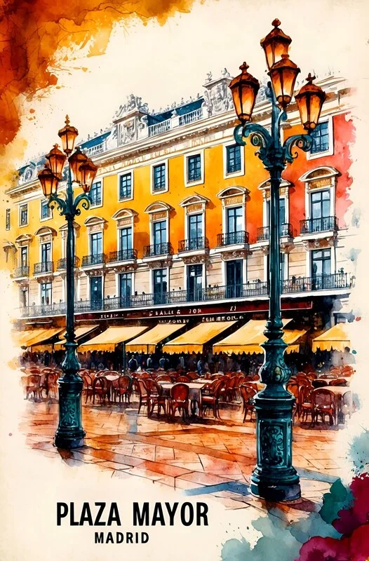 Vászonkép Classic Madrid Art – Retro Illustrations of Plaza Mayor