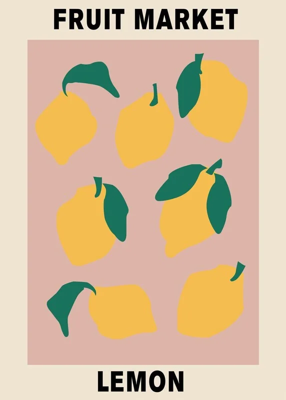 Vector Fruit Market Lemon with Beige and pink and yellow Lemon. Perfekt kitchen poster.