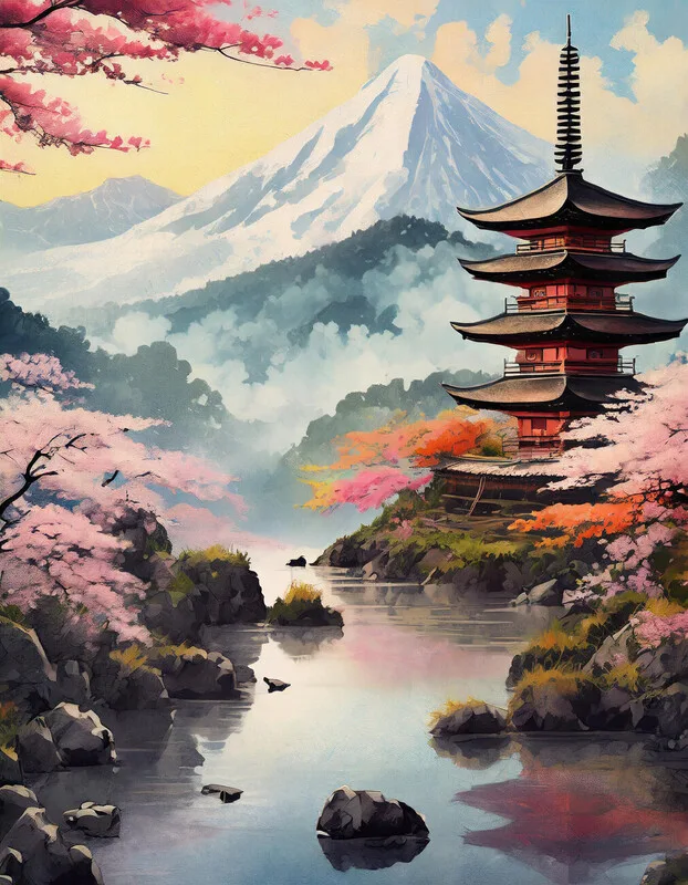 Plakát Japanese Temple