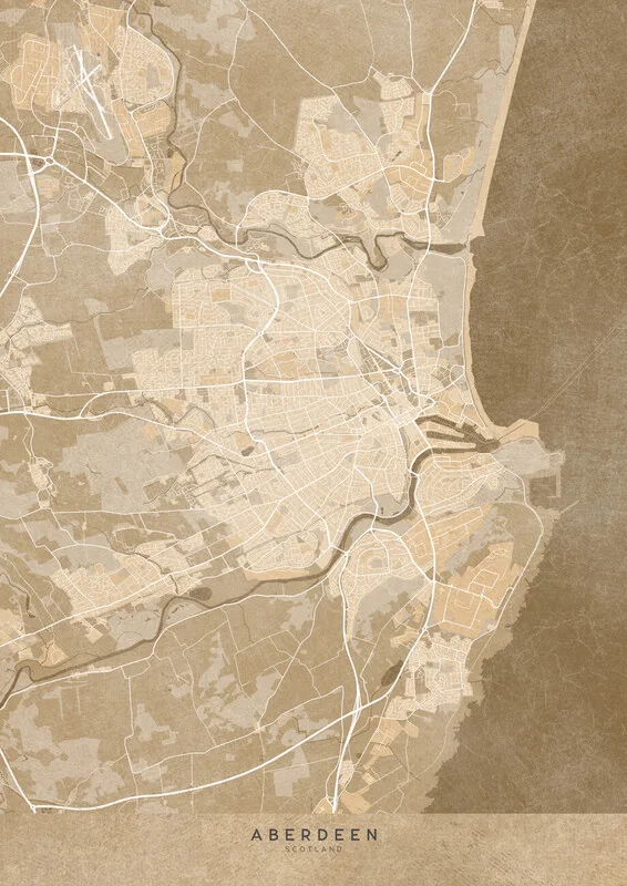 Vászonkép Map of Aberdeen (Scotland) in sepia vintage style