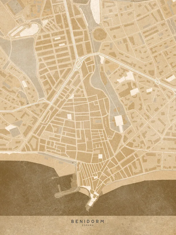 Matrica Map of Benidorm downtown (Spain) in sepia vintage style