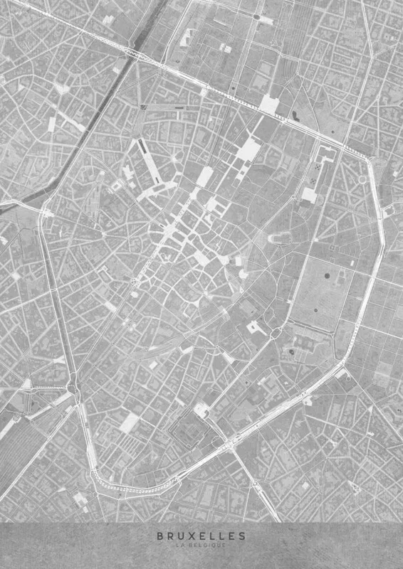 Matrica Map of Brussels (Belgium) in gray vintage style
