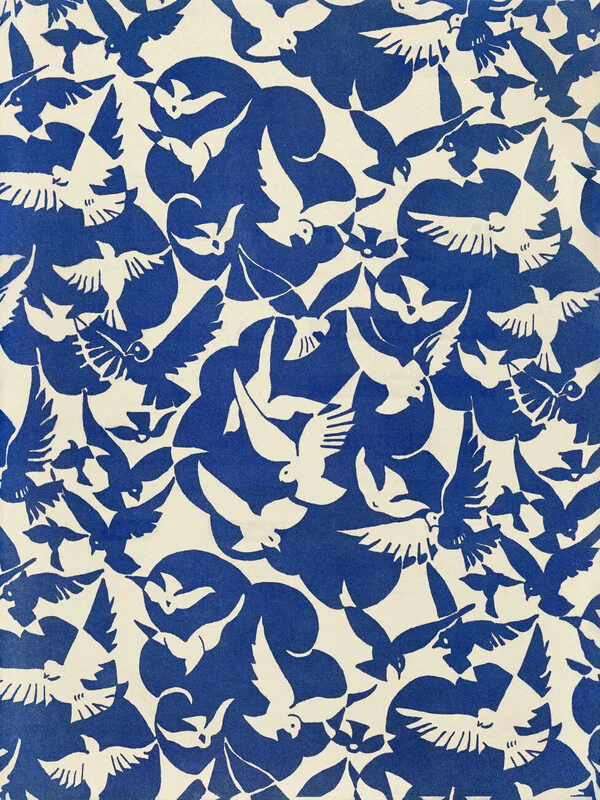 Plakát Pigeons in White & Blue (Abstract Graphic Bird Pattern)