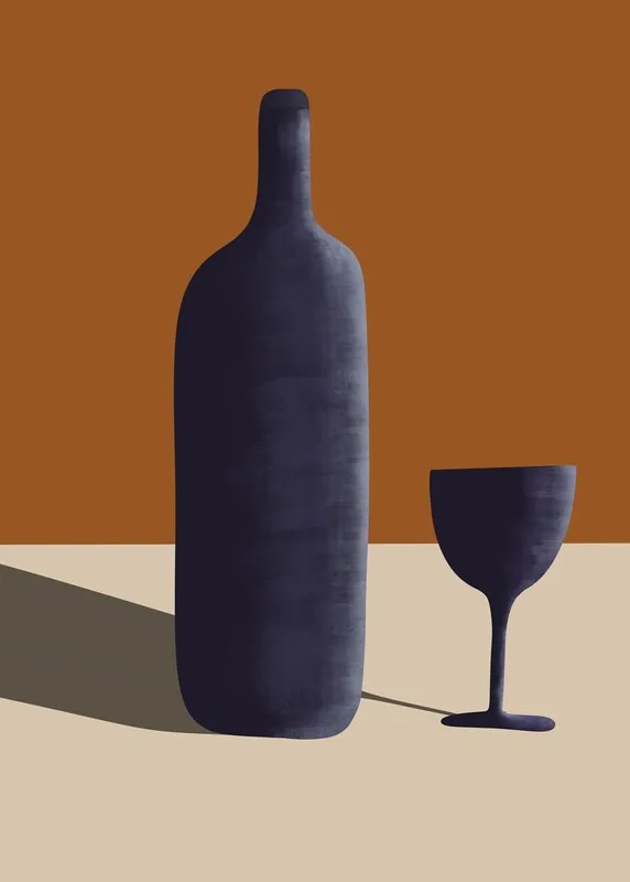 Vászonkép Wine and Wine bottle Poster Modern Minimalistic Wall Art