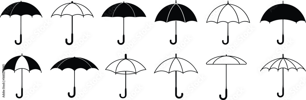 Matrica umbrella icons set, rain protection symbols, weather safety, storm gear, waterpr