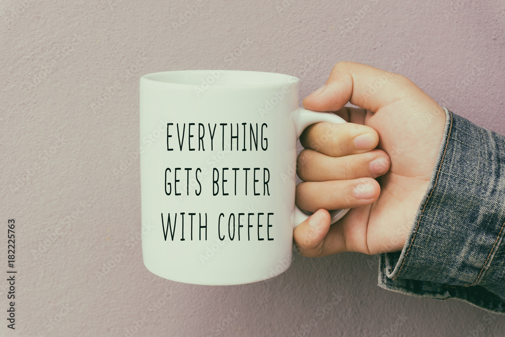 Matrica Hands Holding a Coffee Mug With Text Quote - Everything Gets Better With Coffee