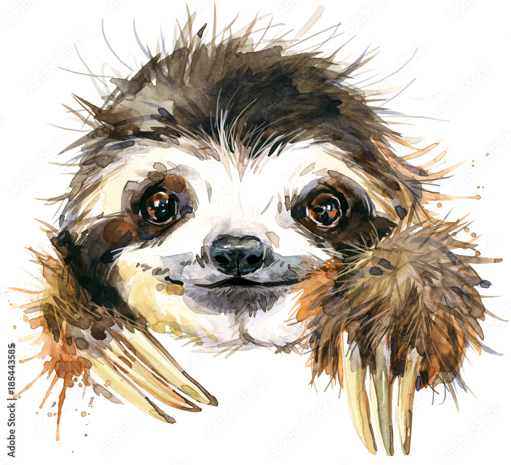 Matrica Watercolor sloth illustration. tropical animal